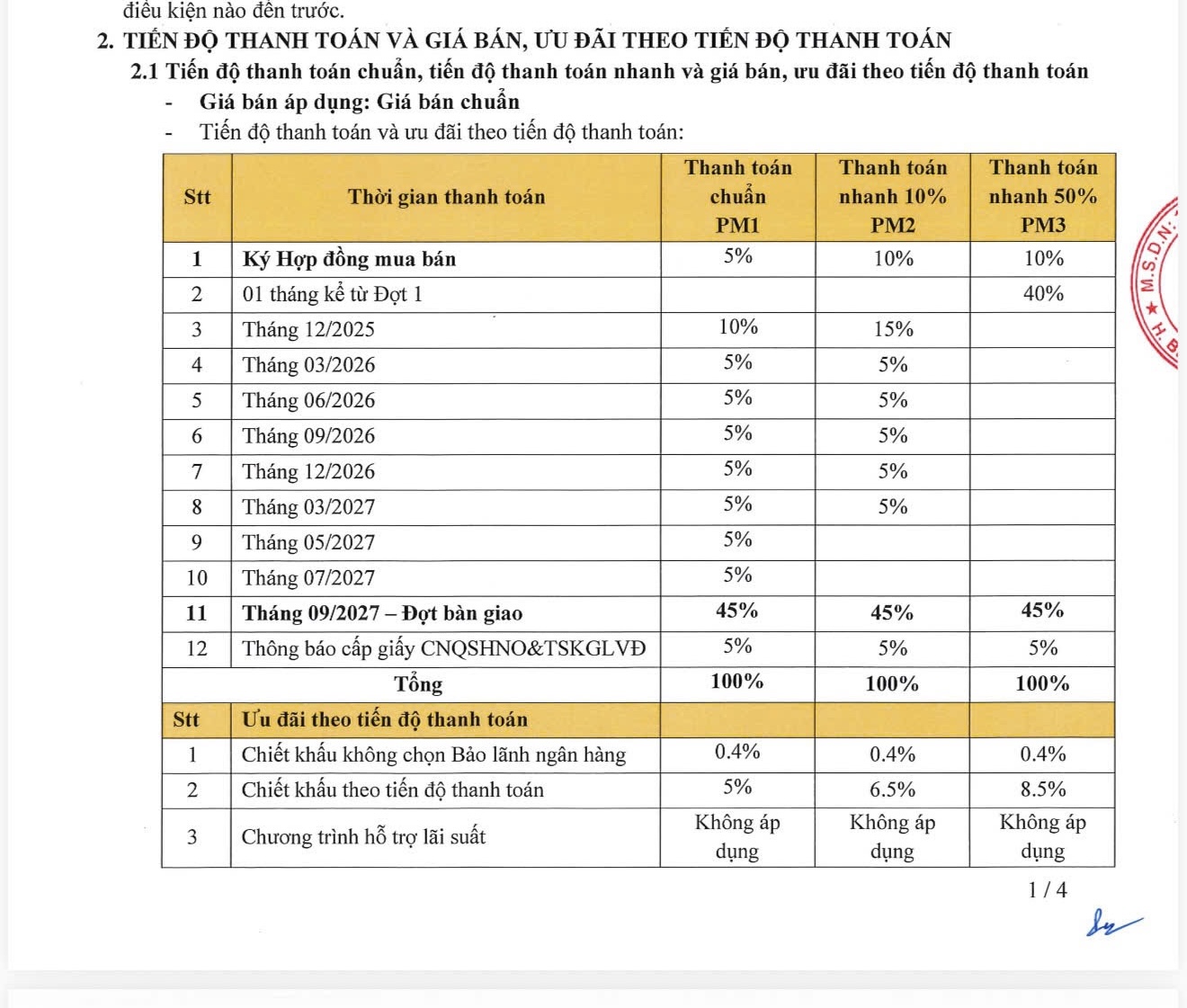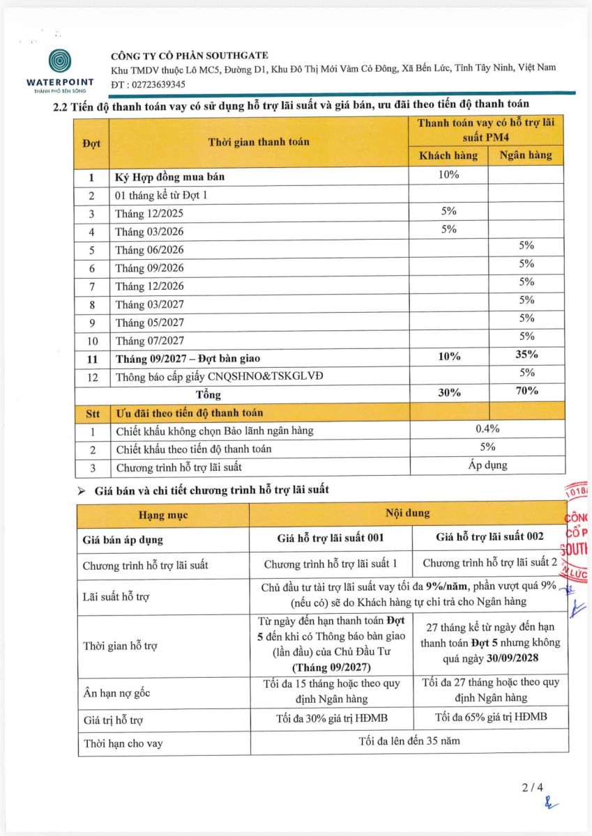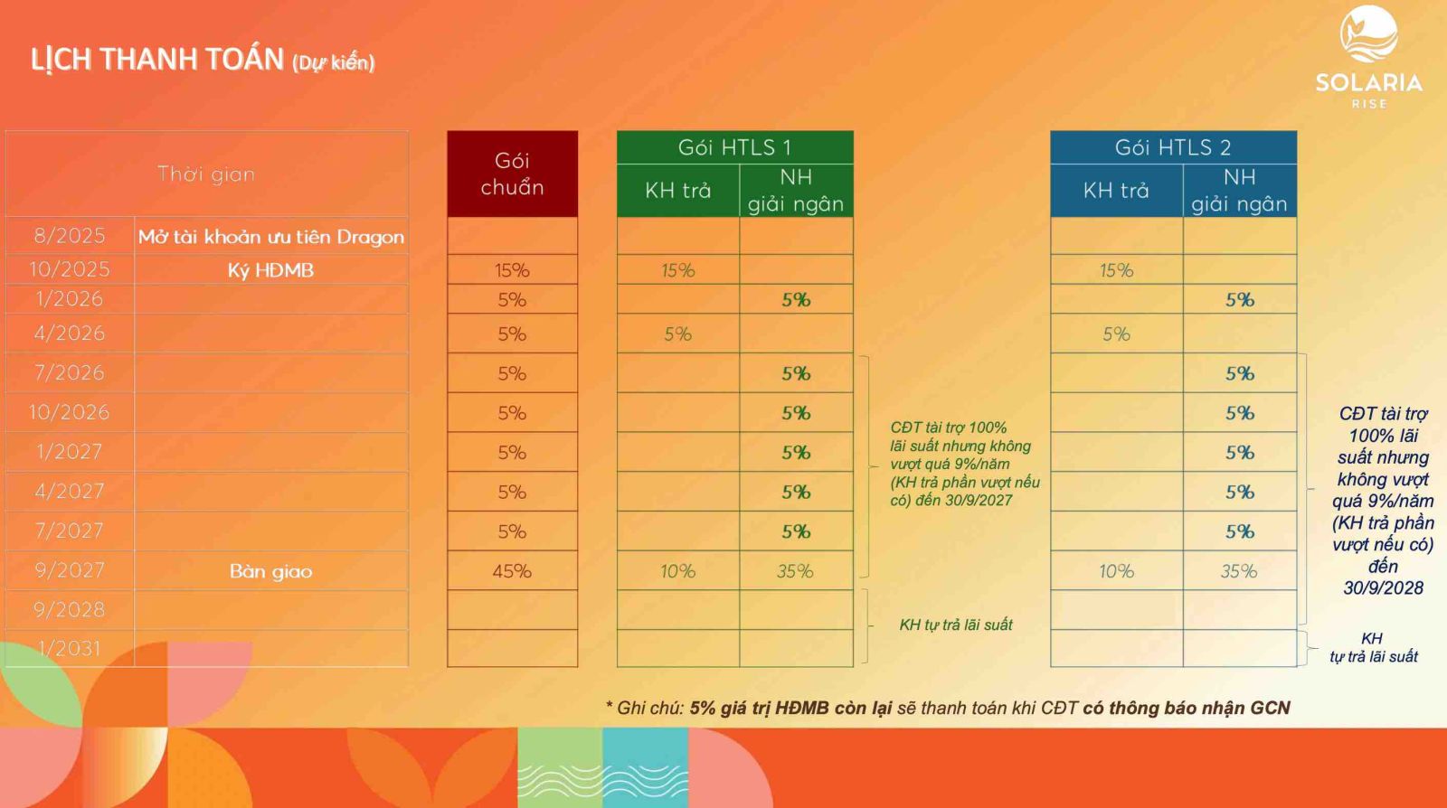 GIÁ VÀ THANH TOÁN DỰ KIẾN DỰ ÁN SOLARIA RISE :