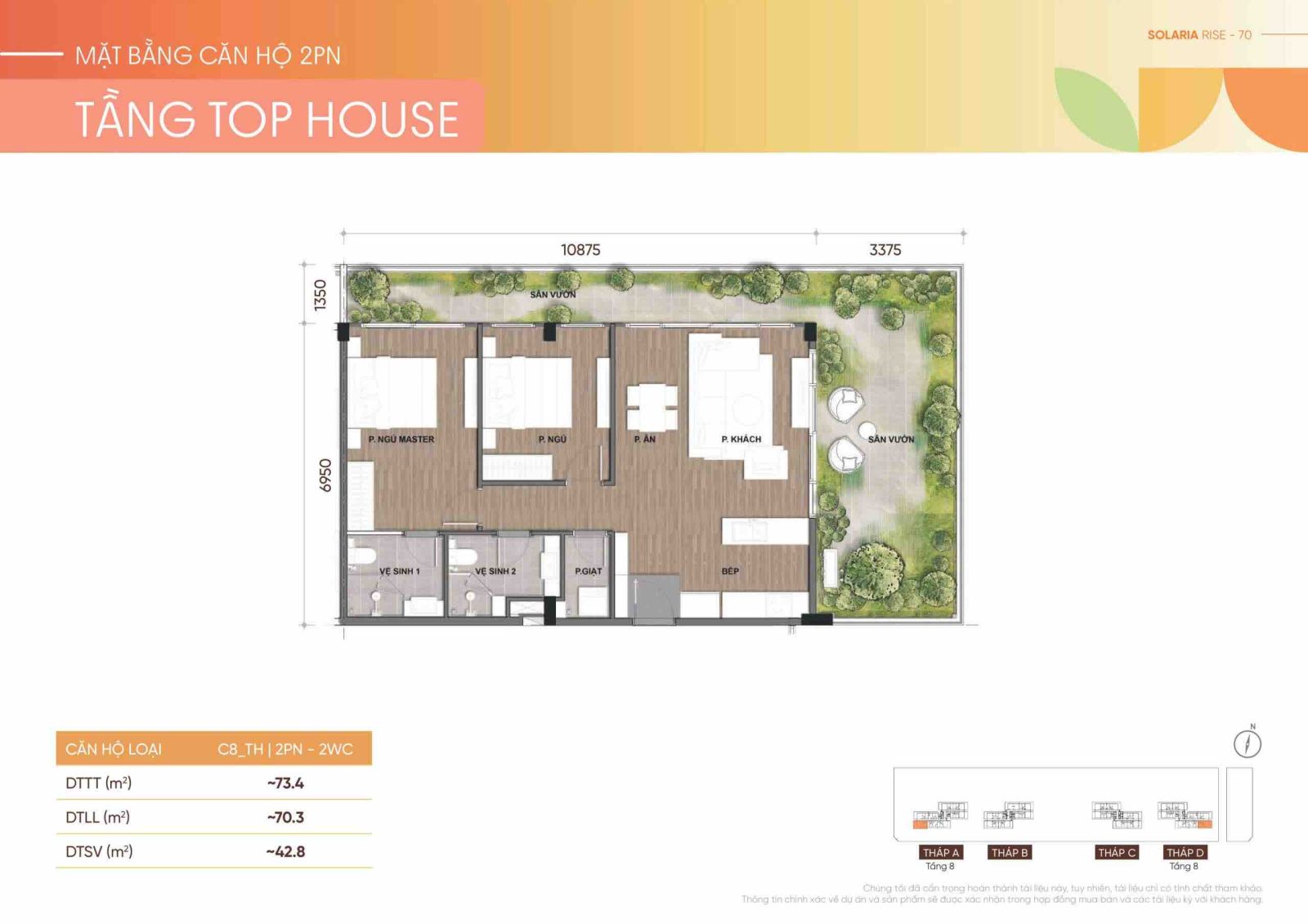 Thiết kế căn hộ TOPHOUSE 2PN - 2WC - CĂN GÓC