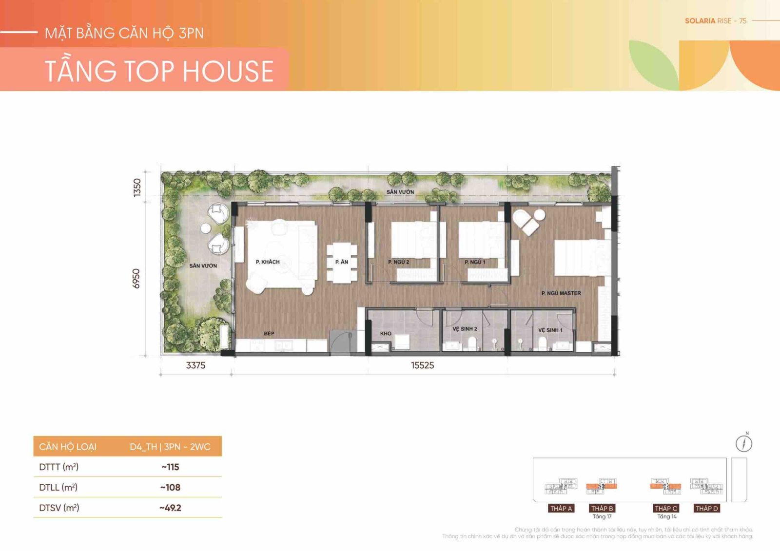 Thiết kế căn hộ TOPHOUSE 3PN - 2WC - CĂN GÓC